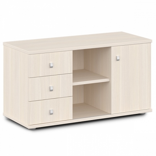 Три ящика, с замком на первый ящик (раздвижная дверь).
